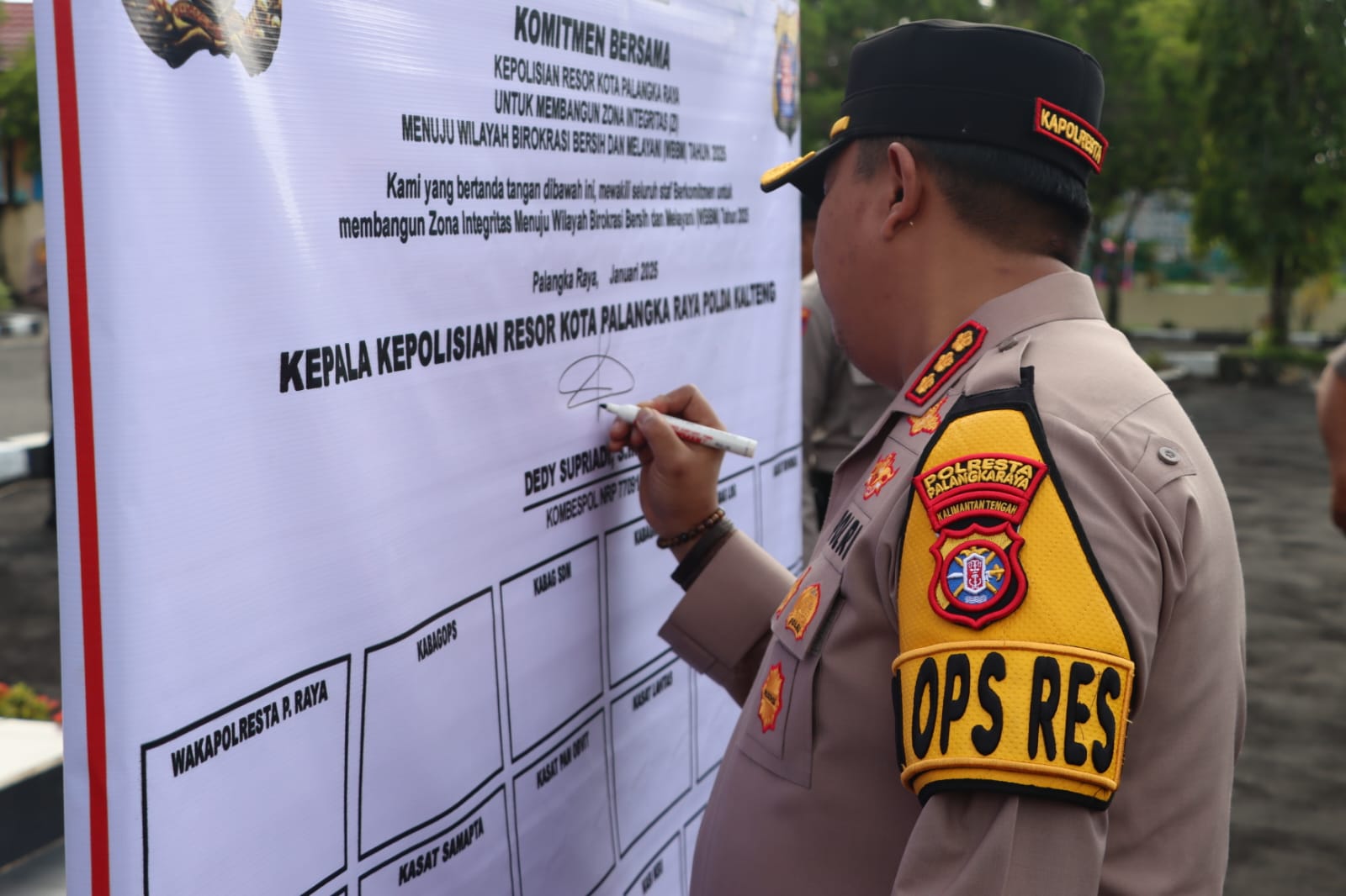 PALANGKARAYA – Pembangunan Zona Integritas (ZI) menjadi agenda prioritas Polresta Palangka Raya dalam mendukung reformasi birokrasi yang berkelanjutan. Hal ini dibuktikan dengan penandatanganan komitmen bersama oleh Kapolresta Kombes Pol Dedy Supriadi bersama jajaran, baru-baru ini di Mapolresta.