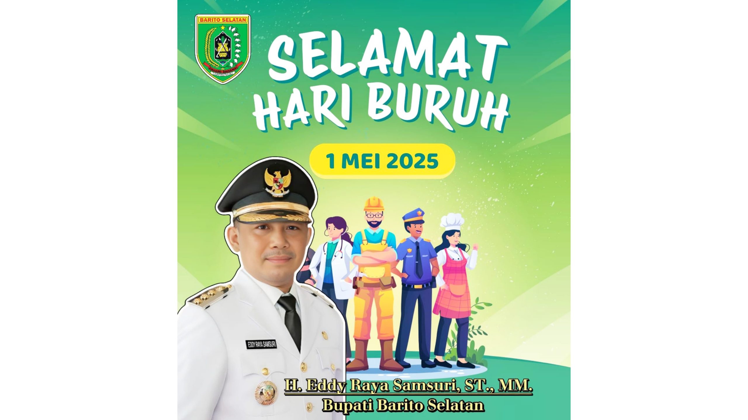 BUNTOK – Bupati Barito Selatan, H. Eddy Raya Samsuri, menyampaikan ucapan selamat kepada seluruh pekerja dan buruh dalam rangka peringatan Hari Buruh Internasional 2025. Dalam keterangannya, ia menegaskan bahwa pekerja adalah bagian penting dari pembangunan daerah yang tidak dapat dipisahkan dari keberhasilan pembangunan itu sendiri.