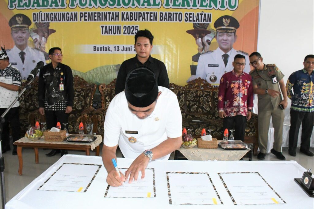 BUNTOK – Wakil Bupati Barito Selatan Kristianto Yudha melantik 295 pejabat fungsional baru dalam sebuah prosesi resmi di Aula BKPSDM Barsel, belum lama ini. Pelantikan ini menandai komitmen pemerintah daerah dalam memperkuat layanan publik melalui penempatan ASN profesional di seluruh pelosok wilayah.