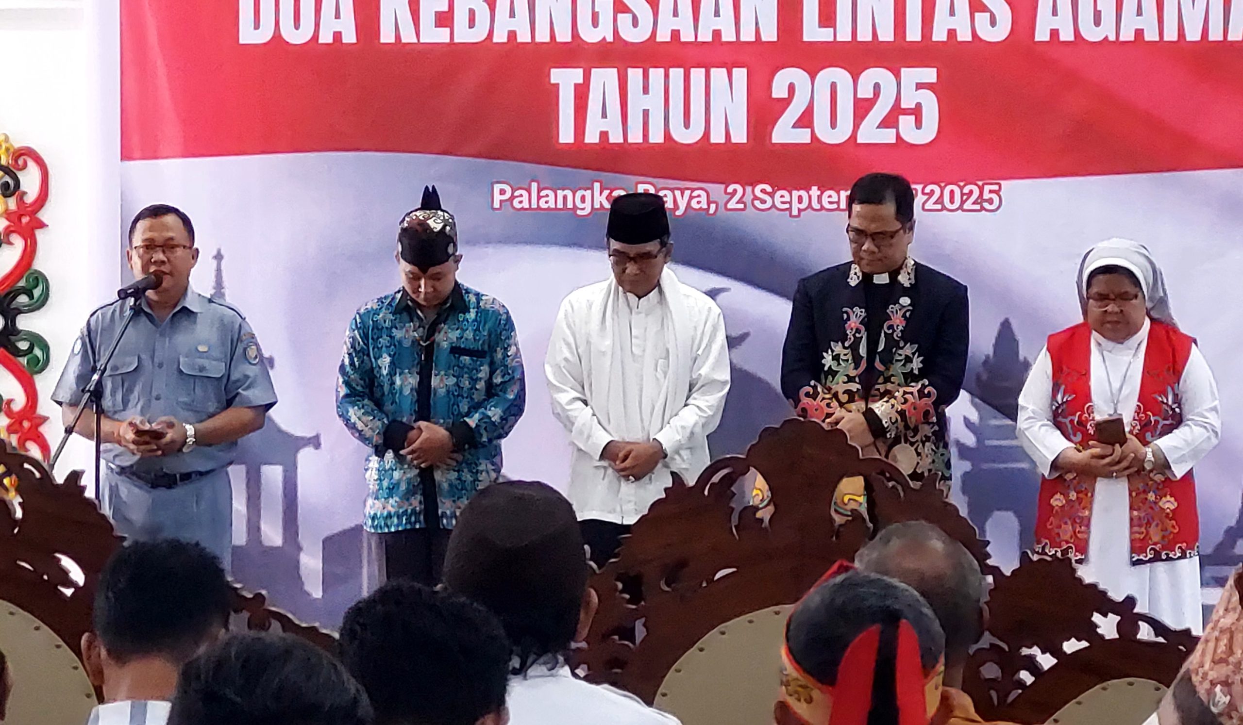 Kegiatan doa bersama ini berlangsung khidmat dan dihadiri Wakil Gubernur Edy Pratowo, Pangdam XXII/Tambun Bungai Mayjen TNI Zainul Arifin, jajaran Forkopimda, tokoh lintas agama, ormas Dayak, organisasi masyarakat, serta perangkat daerah.