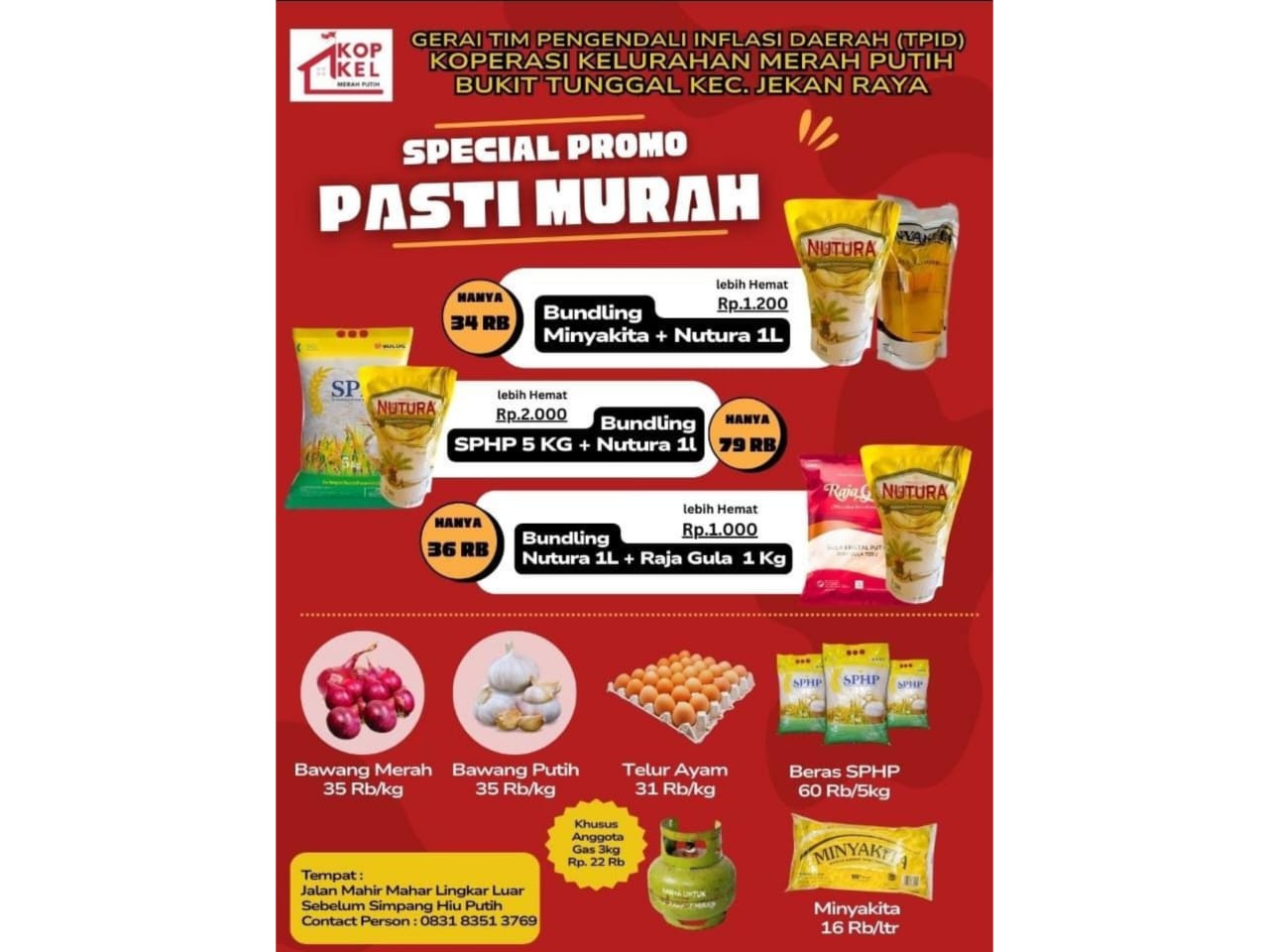PALANGKARAYA – Untuk membantu meringankan beban masyarakat sekaligus menjaga inflasi daerah, Gerai TPID Koperasi Merah Putih, Bukit Tunggal, Palangka Raya, mengadakan promo paket sembako murah.