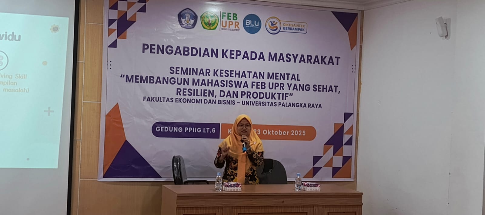 FOTO Ist.: Suasana Seminar Kesehatan Mental mahasiswa FEB UPR di Gedung PPIIG Universitas Palangka Raya.