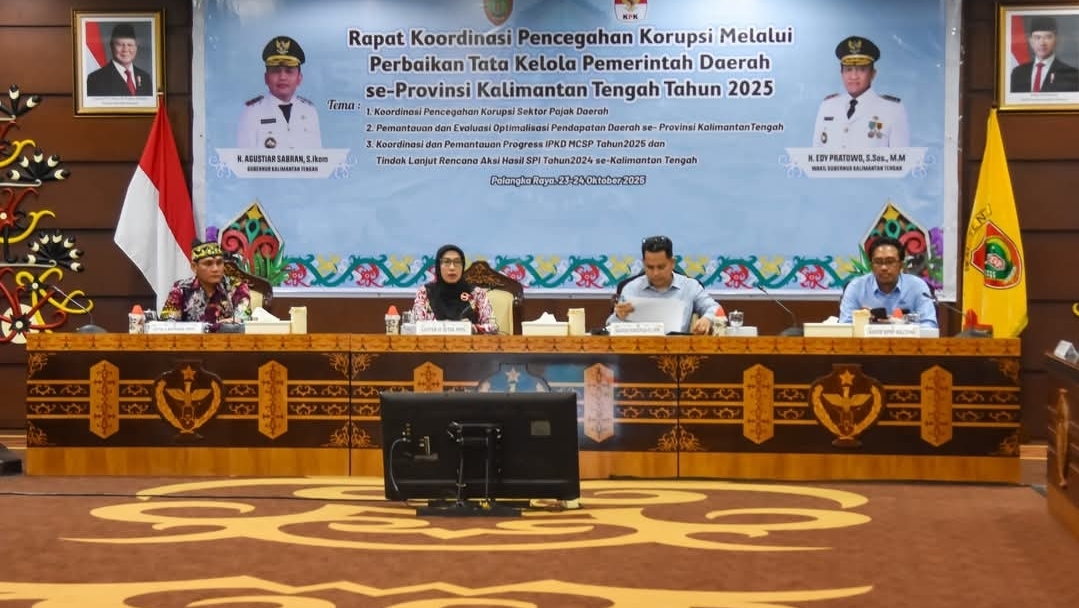 Komitmen tersebut disampaikan dalam Rapat Koordinasi (Rakor) Pencegahan Korupsi melalui Perbaikan Tata Kelola Pemerintah Daerah yang digelar di Aula Eka Hapakat, Kantor Gubernur Kalteng, Kamis (23/10/2025).