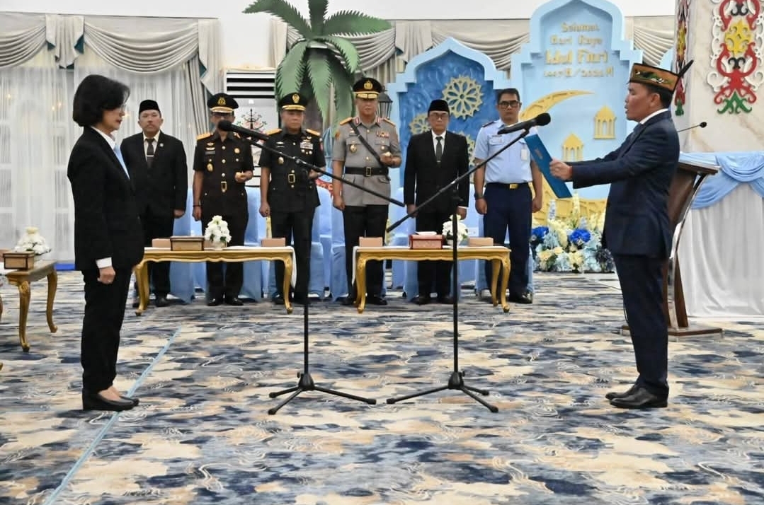 PALANGKA RAYA – Gubernur Kalteng, Agustiar Sabran resmi melantik Linae Victoria Aden sebagai Penjabat (Pj) Sekretaris Daerah Kalteng dalam prosesi pengambilan sumpah/janji jabatan di Istana Isen Mulang, Selasa (31/3/2026).